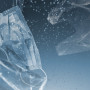 Save the ocean campaign face mask and plastic bags sinking in ocean remix media