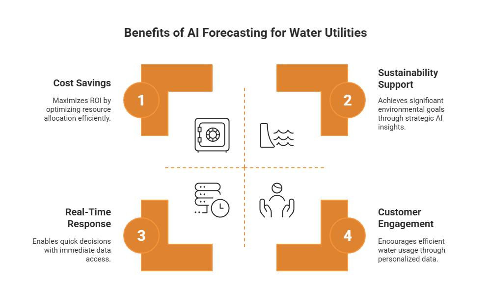 Accurate forecasting prevents overproduction, reduces water loss, and enables smarter scheduling of pumping and treatment systems. This not only conserves water but also lowers energy and maintenance costs.